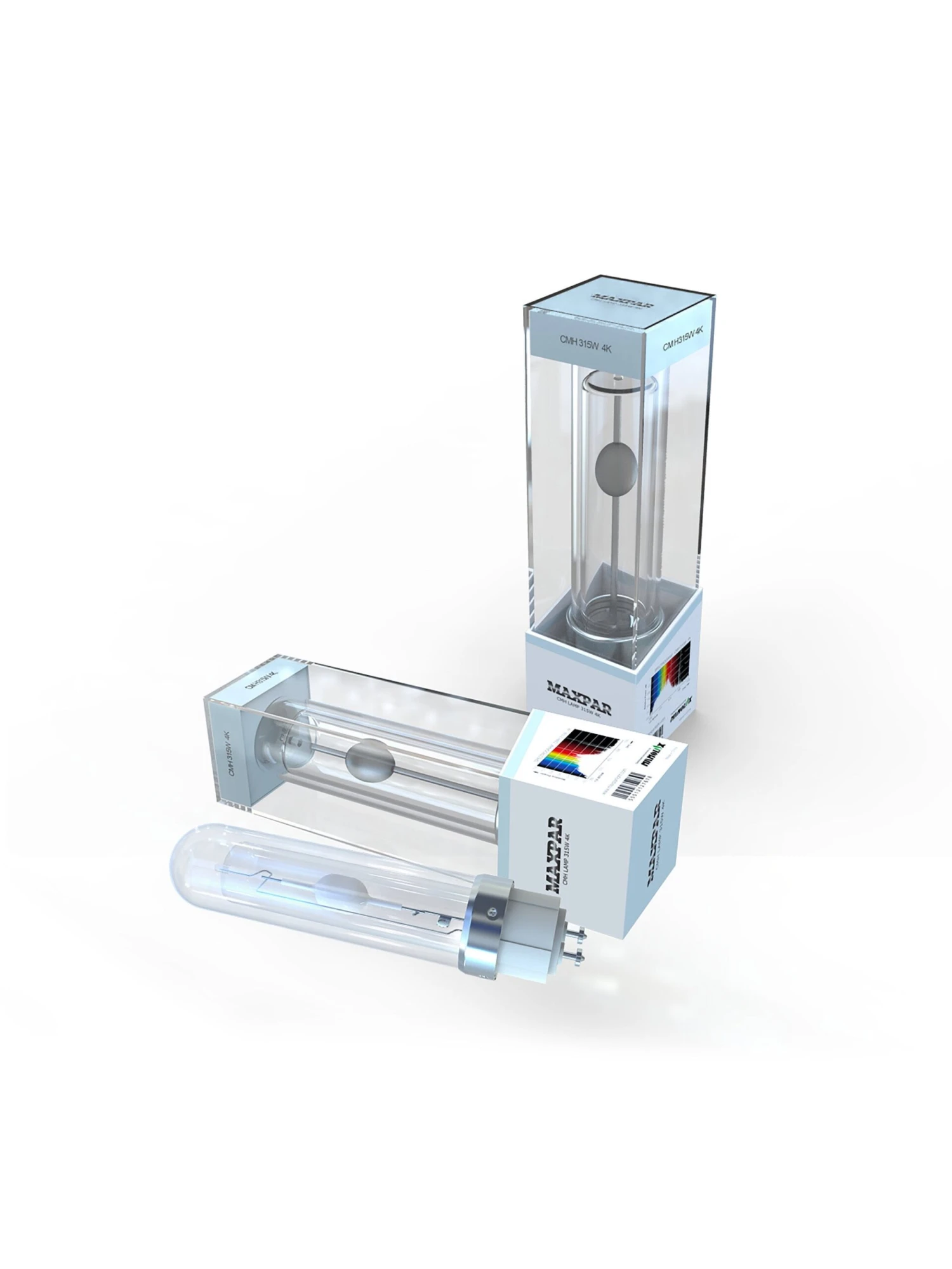 Ceramic metal halide lamp technology is broad-spectrum based and has a more uniform output than most other horticultural lighting. With 13.4% blue light, 2.5 times that of an HPS lamp, this MaxPar bulb for the Nanolux CMH 315w fixture is optimal for all stages of plant growth, from cloning, to vegetative growth and flowering. Open fixture rated, low power consumption, and good for 20,000 hours of use.